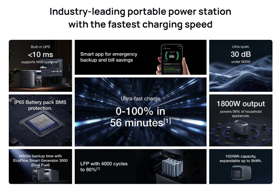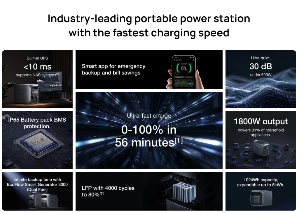 DELTA 3 Plus נטען מ-0% עד 100% תוך 56 דקות.