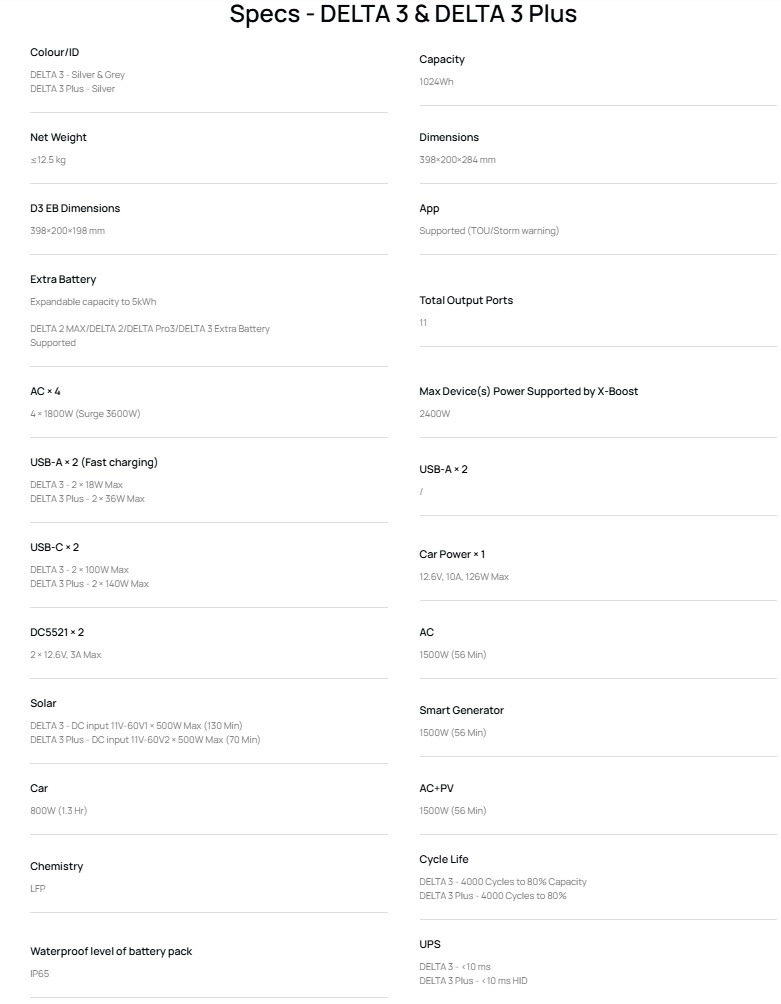 ניתן להרחבה של 1-5 קוט"ש עם סוללה נוספת DELTA 3, סוללה נוספת DELTA Pro 3,